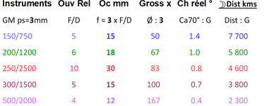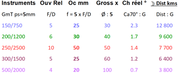 Les focales pourront bien sûr être choisies à quelque chose près, en fonction des oculaires présents sur le marché.