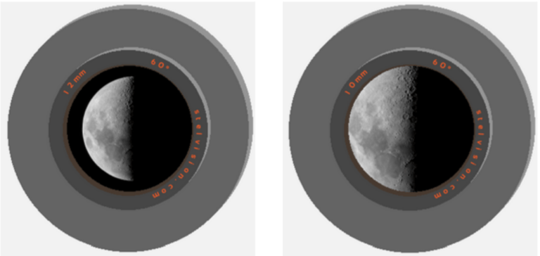 Remarque : le 300/1500 ne permet pas ici d’observer la Lune en entier (0.5°), un oculaire d’au moins 70° serait nécessaire. 200/1200 oc12 100x 60° 0.6° 300/1500 oc10 150x 60° 0.4°